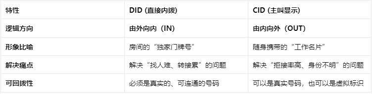 在成熟的呼叫中心应用中,DID 与 CID 往往是“双剑合璧”的: