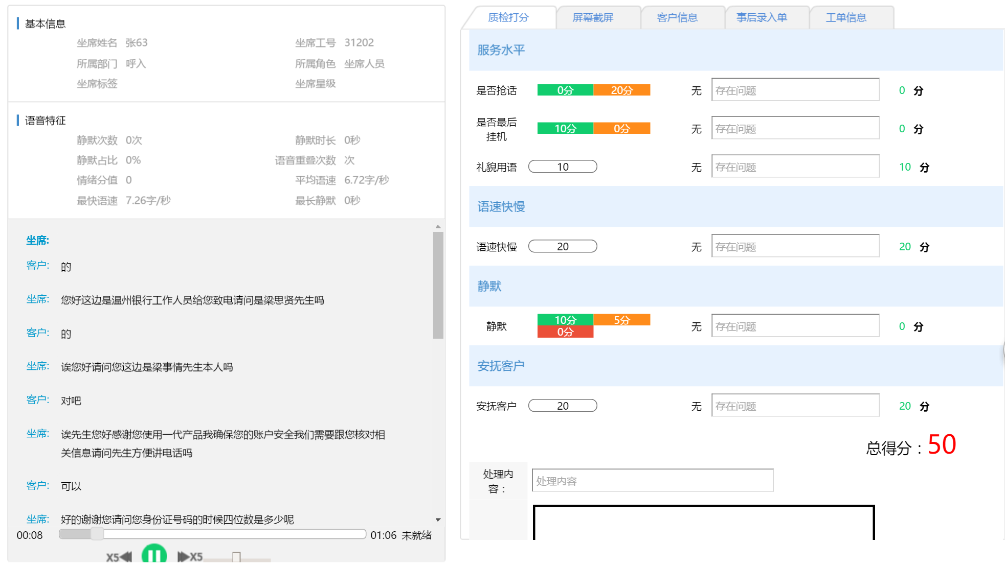 人工质检查受主观因素影响,容易漏判语音中存在问题