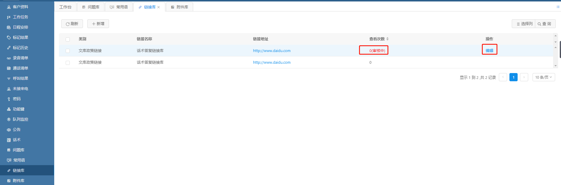加后,点击“确定”,就新增加一个待审核的链接库,处于审核中状态,可以编辑;管理员审核后只能查看。