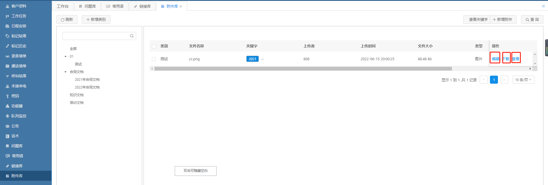 点击确定后,上传成功,可以编辑,下载,查看附件内容。