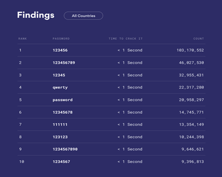 SIP注册密码以及web端登录密码不可使用弱密码,排名前十的弱密码如下图所示,是否有一款是你正在使用的。