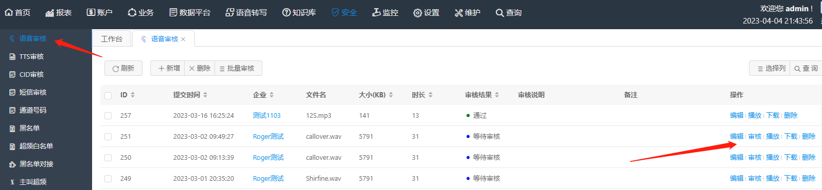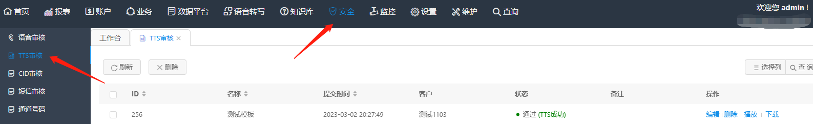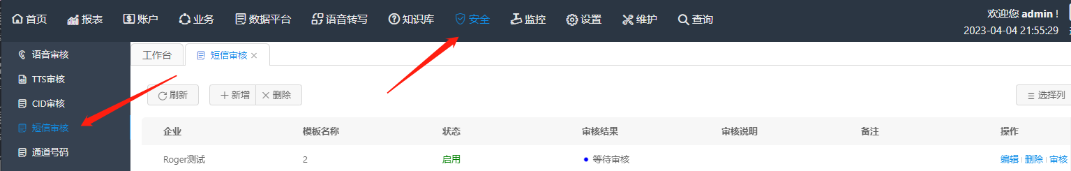 对于客户上传的语音,TTS模板,短信模板内容做严格审核,运营商验证审核通过才可正常使用。