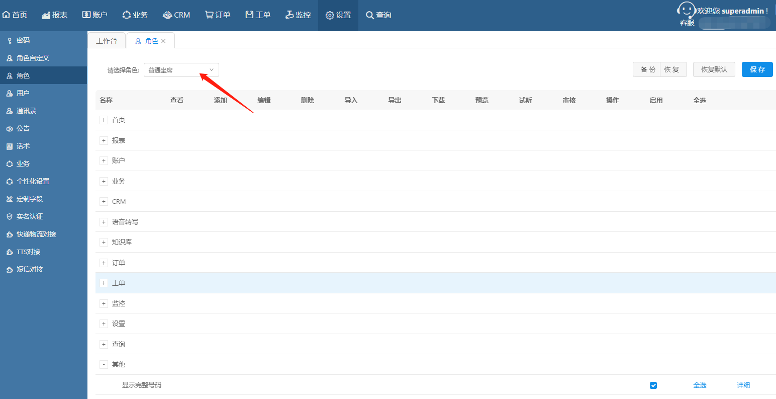 系统权限比较详细完整,可以尽量减少客户或者坐席的使用权限,降低误操作的概率。