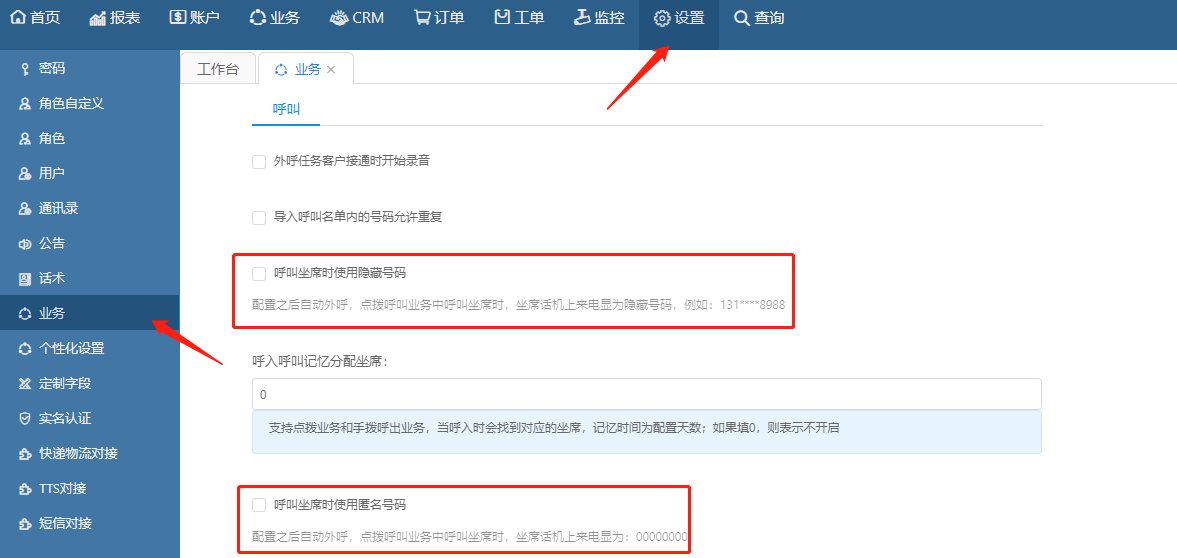 如需隐藏网页端号码,可以到客户账户,设置->角色页面,选择需要隐藏号码的角色,取消显示完整号码的权限。
