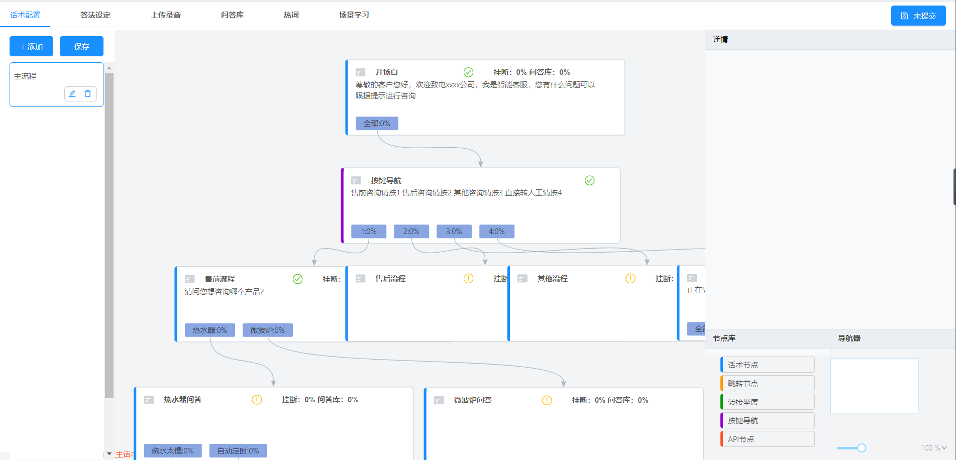 首先是对导航的IVR进行升级,通过AI智能语音导航,替代原来IVR按键业务选择,通过设置相应的话术流程,实现用户说出业务诉求,通过ASR语音识别技术,识别用户选择并实现业务导航,来帮助用户实现咨询或者其他的业务场景。