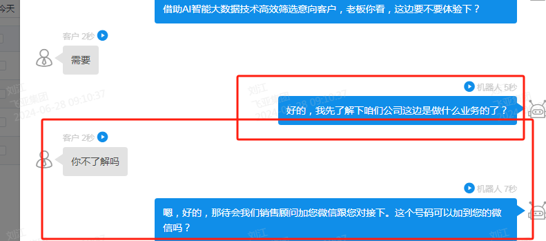 那么就要两个方向,第一个通过漫长的时间去收集被叫到底会回答一个什么关键词,收集到了以后做补充,并且需要针对不同的业务设定不同的回答,这样的好处就是显得机器人很聪明,不好的地方就是通话时间可能过长,导致转化成本加高。