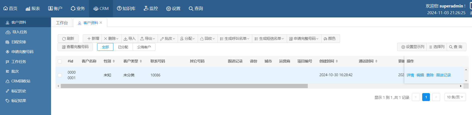 1、客户数据管理:CRM系统能够集中管理客户信息,包括联系方式、购买历史、沟通记录等,使电销人员在拨打电话前能够迅速了解客户背景,针对性地进行推销。