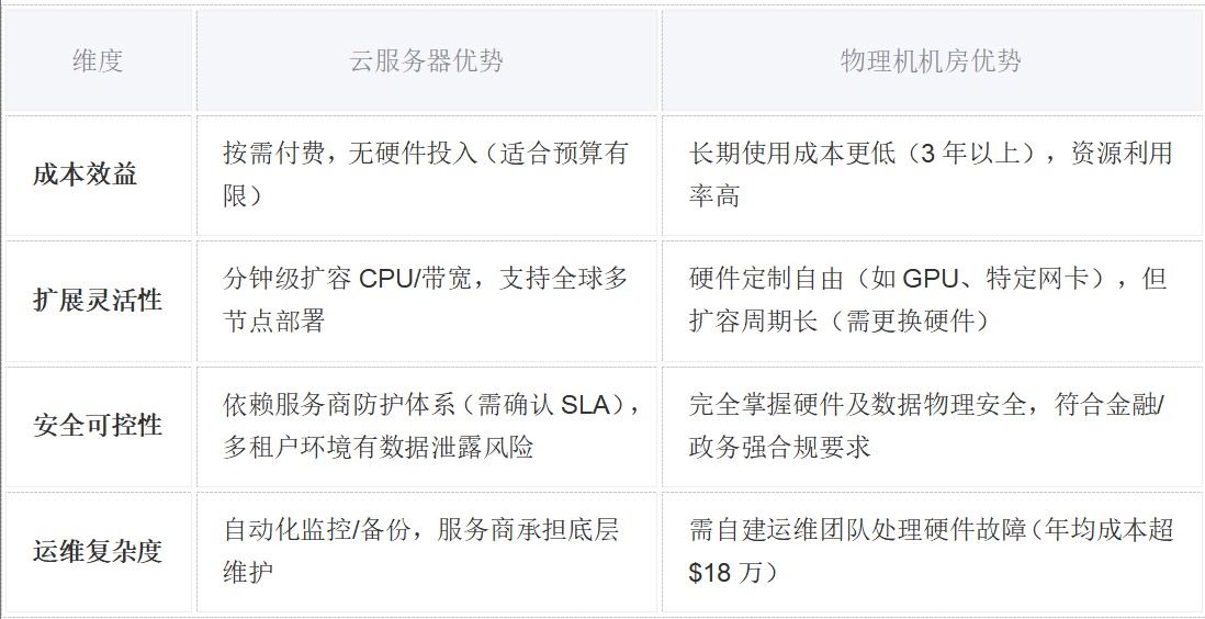 l 金融/政府:选择通过等保认证的物理机机房,配备AI行为分析防御API攻击。