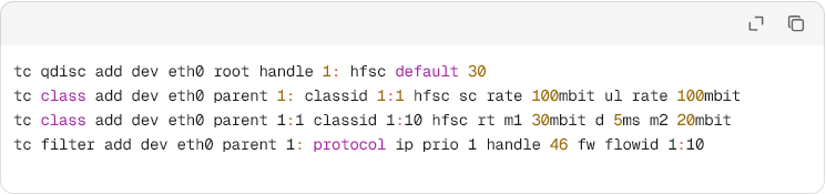 ‑ 上行是瓶颈时,在出口做 egress shaping,把 VoIP 预留 30 % 带宽。