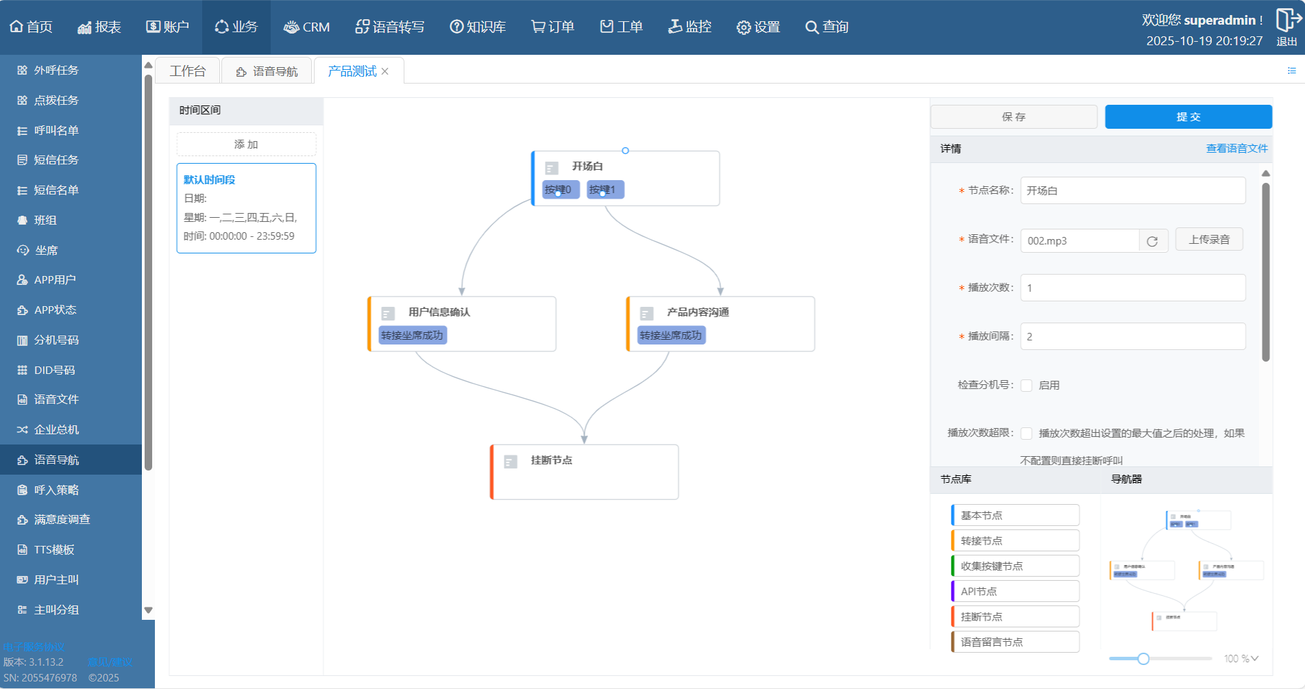 呼入多级IVR(交互式语音应答)按键语音导航是现代客户服务中心不可或缺的组成部分。它的核心使用场景可以归结为:在用户与人工坐席对话前,通过自动化的方式,高效、准确地完成信息收集和请求分流。