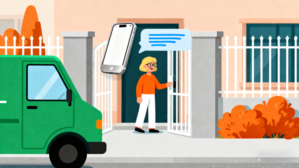 外卖进小区即外呼,闪送提前告知取件暗号,搬家车队到楼下自动通知客户挪车——同一套「车到人知」逻辑,复制即用。