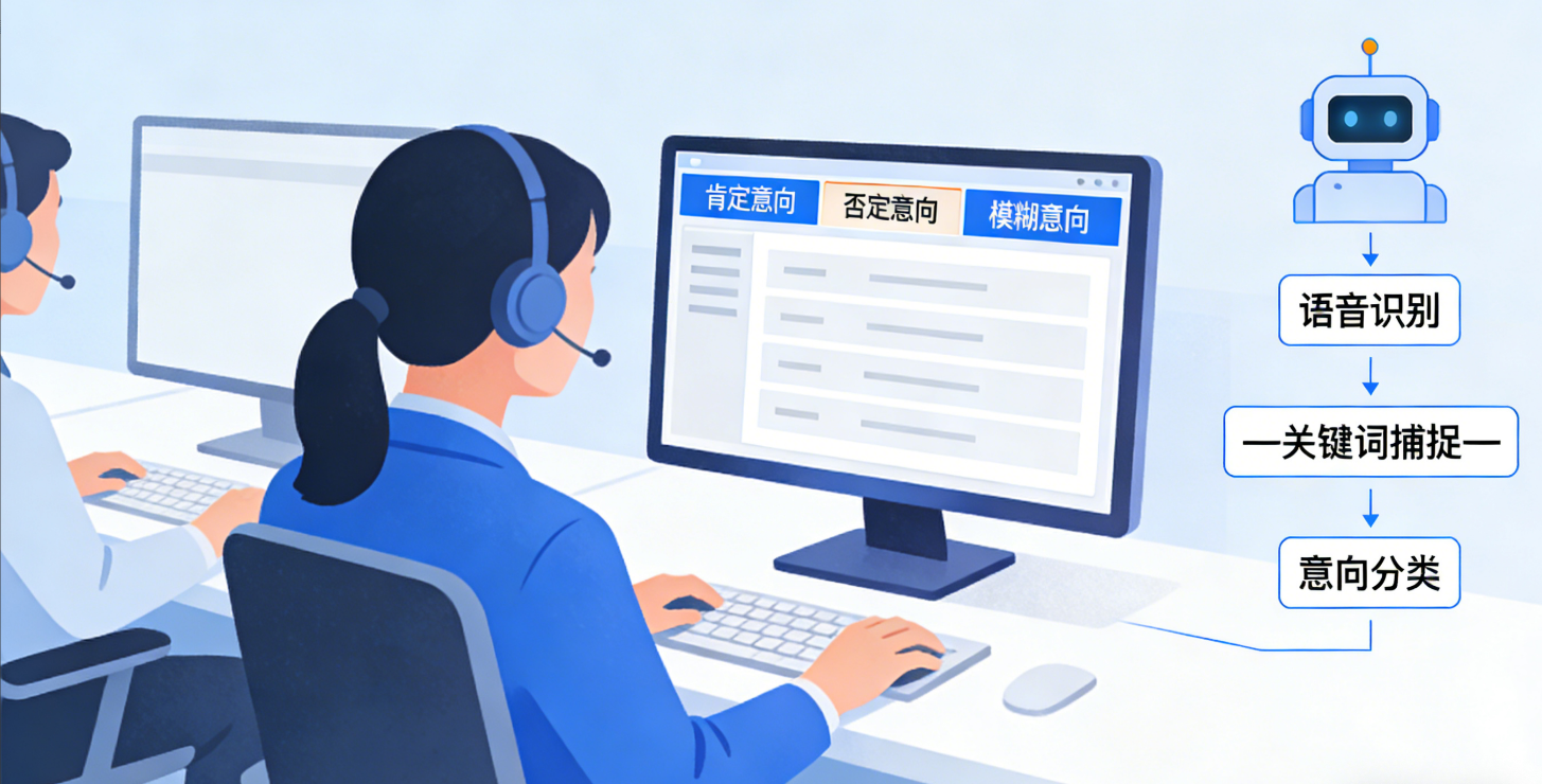 ‍    ‍当然,这并不意味着人机耦合不重视肯定意向的筛选,反而它能让肯定意向的筛选更精准。机器在初步筛查时,也会捕捉明确的肯定意向关键词,比如“我要办理”“帮我预约”“详细说说”,并优先标记为高意向客户,直接分配给人工坐席进行高效跟进,减少客户等待时间,提升转化概率。但相比之下,筛选否定意向能更直接地帮呼叫中心节省成本、提升效率——毕竟剔除无效呼叫后,人工坐席可以把全部精力放在高意向和模糊意向客户上,不用在无效沟通上浪费时间。
