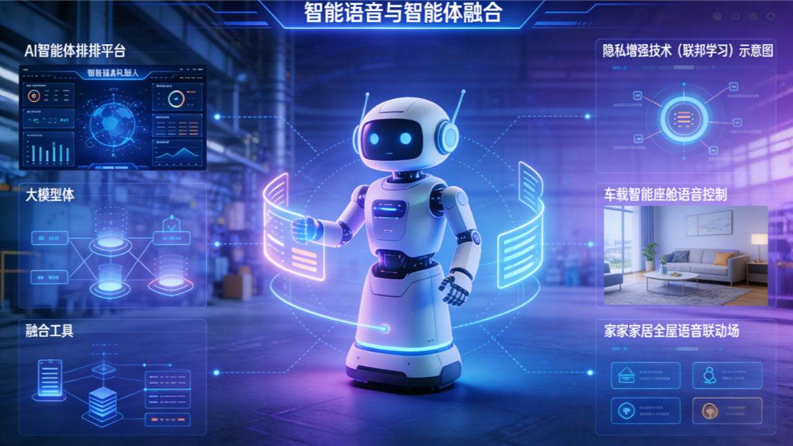 多模态融合:语音 + 视觉 + 文本 + 触觉联动,如车载场景中语音指令触发 AR 导航、智能家居中语音控制摄像头联动。